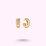 Mini créoles dorées à rayures. Discrètes, tendances, parfaites pour un look simple mais stylé.